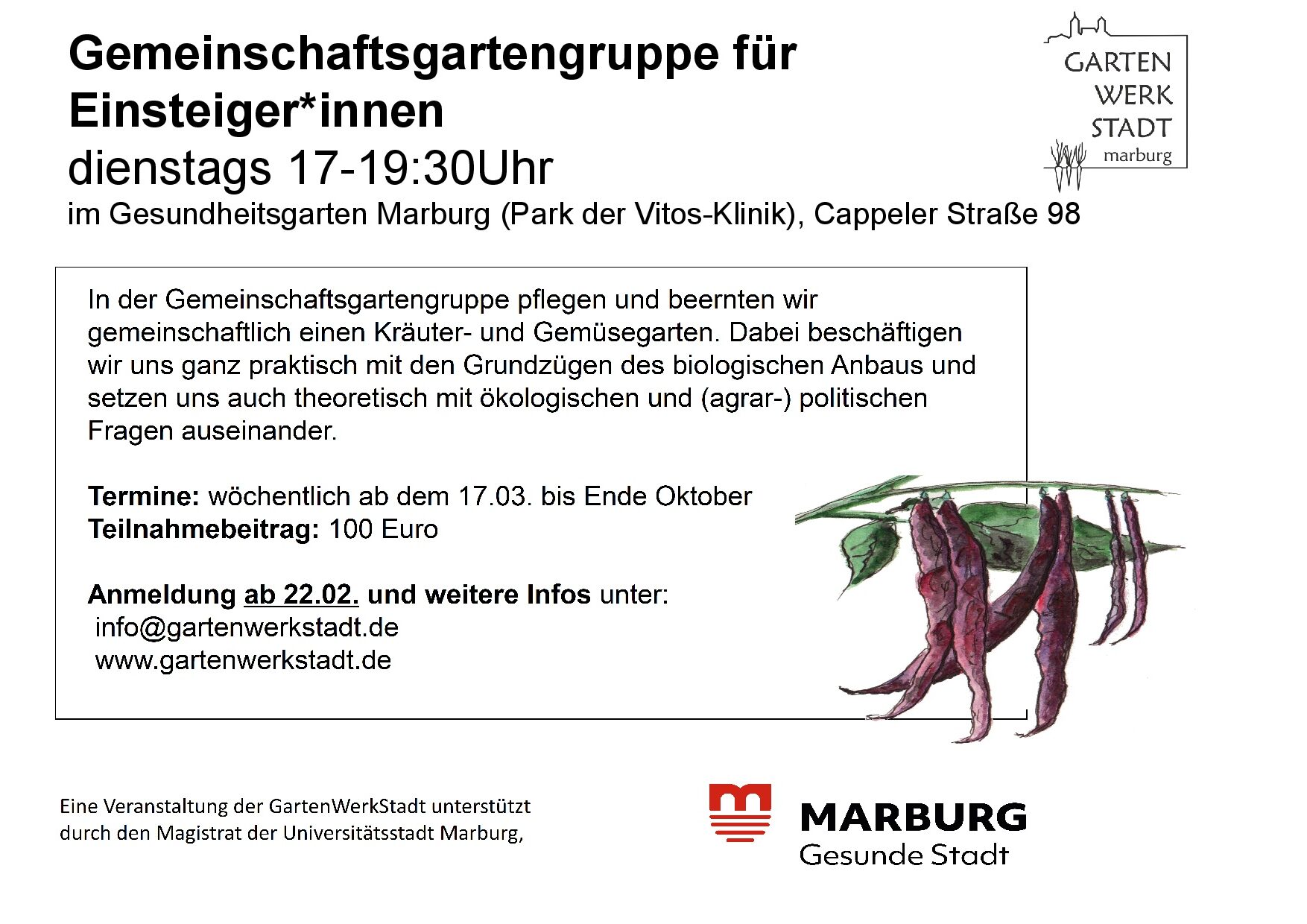 Anmeldung erforderlich:info@gartenwerkstadt.de
